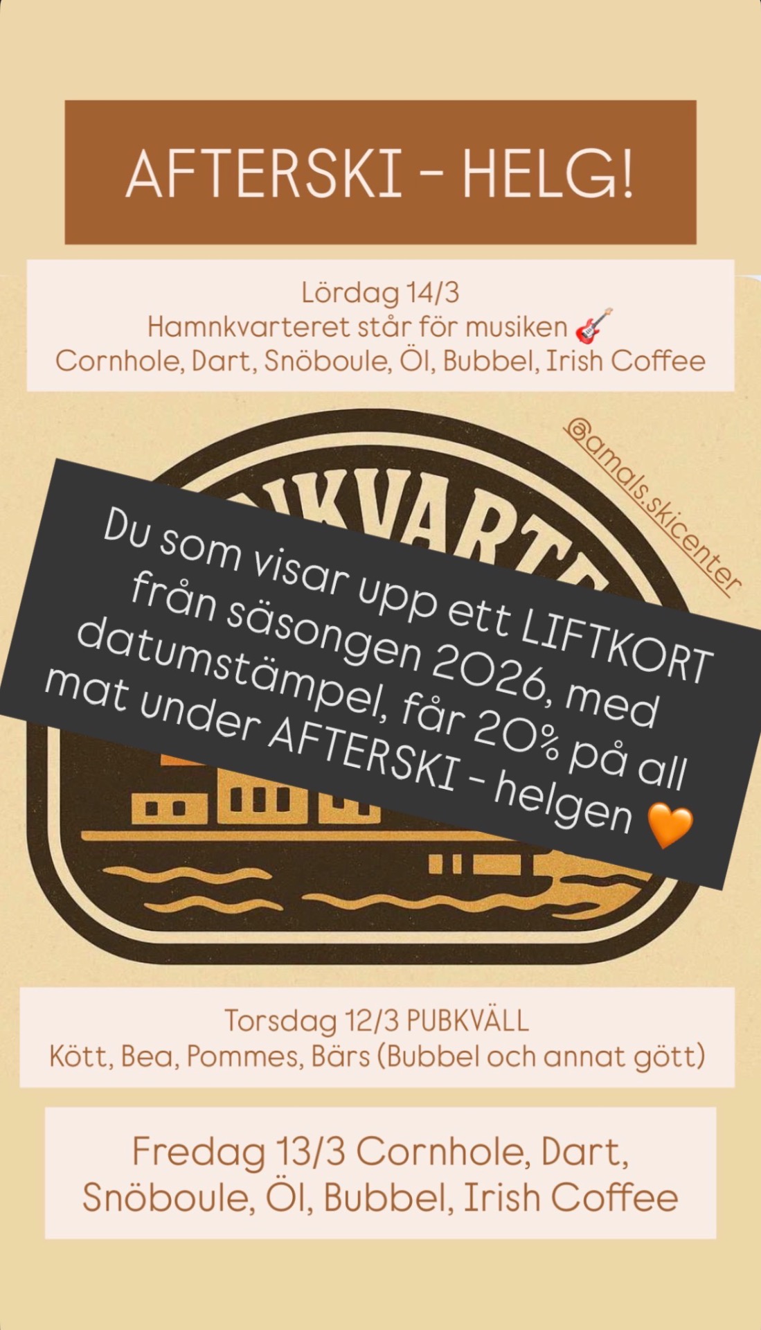 Snart är vintersäsongen på Åmåls skicenter, Högheden, över. Men inte riktigt än. V 11 ordnar vi AFTERSKI - HELG med gött häng, mat och dryck.